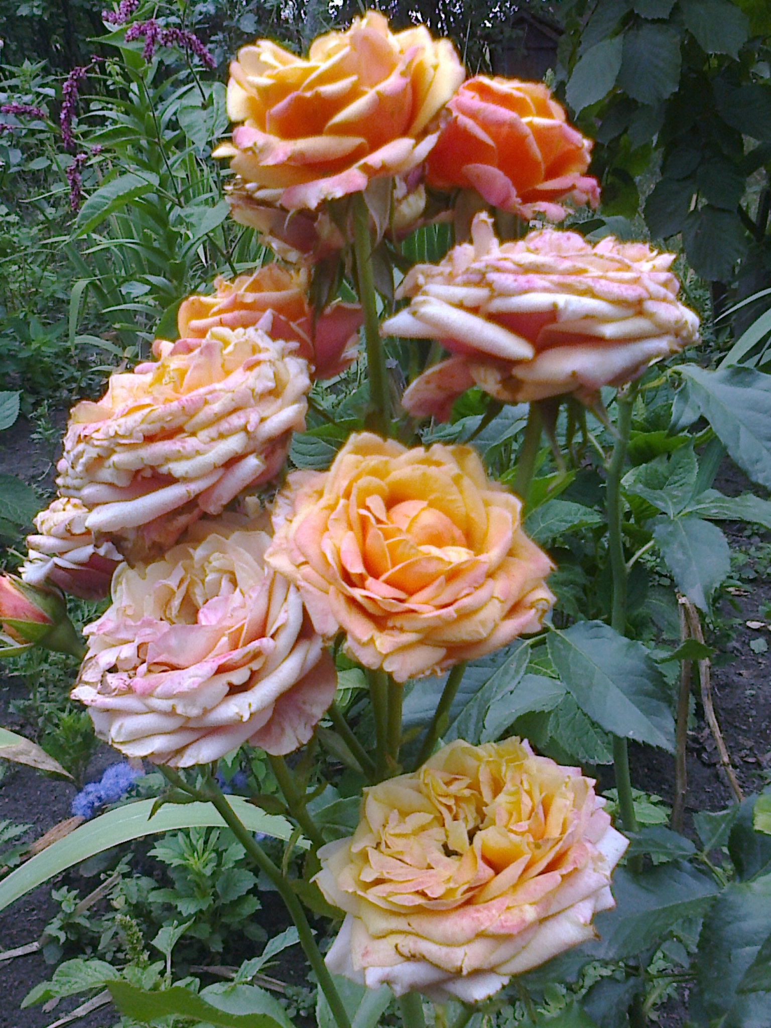 Троянда-мрія! На одному стовбурі розквітає велика кількість квітів, які поступово змінюють колір від соковитого персоково-рожевого до ніжного кремового кольору! Пелюстки не осипаються.