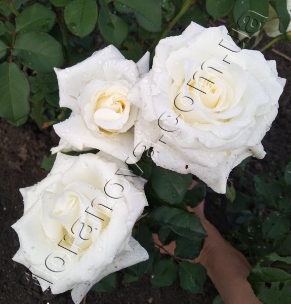 У 2001 році у Франції (NIRP International) в результаті селекційної праці був отриманий сорт білої чайно-гібридної троянди, названий надалі Анастасія (Anastasia, Nirpwhi). Красиві квіти досягають у діаметрі близько 11 см. У середньому квітка складається з 30 пелюсток, але не рідко їх кількість досягає 40 штук. Загальне враження від кущів цього сорту троянди у саду є строгість та витонченість. Прекрасної рисою Анастасії є її толерантність до дощів (досить рідкісна якість для білих сортів троянд), і досить хороша стійкість до хвороб. Крім цього Анастасія не вигорає на сонці, а в осінній період, з настанням похолодань, білосніжні пелюстки набувають легкий кремовий тон. Цвітіння цього сорту можна назвати дуже рясним, але за рахунок того, що бутони Анастасії розпускаються повільно, та й тривалість життя окремо взятої квітки досить довга, її кущі мають прекрасний декоративний вигляд. Темно-зелені глянцеві листя служить відмінним фоном для білосніжних квітів.
