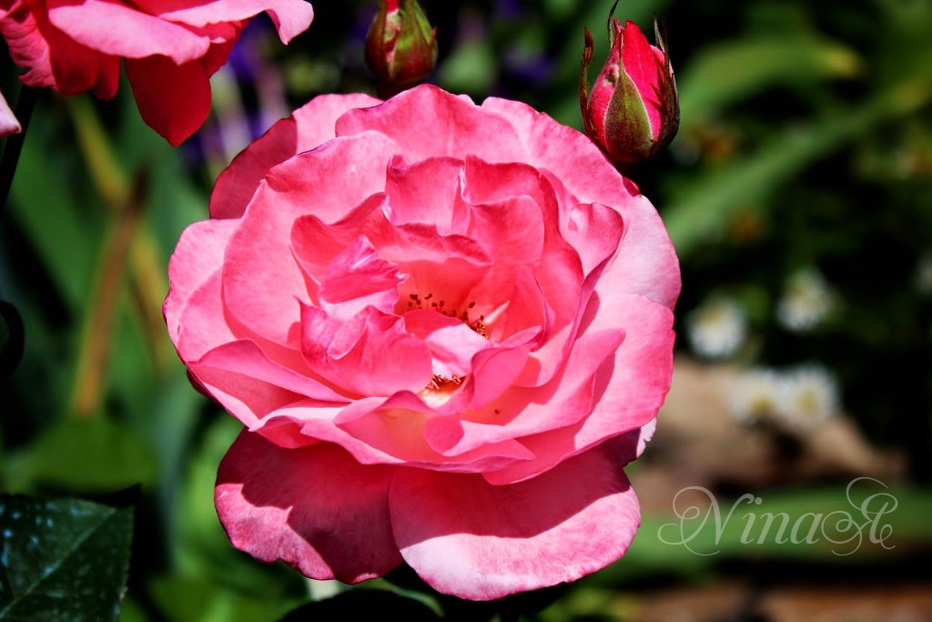 Queen Elizabeth, Куин Элизабет. Сорт получен при в 1954 году в США при скрещивании Charlotte Armstrong × Floradora (Dr. Walter E. Lammerts). Острые бутоны красно-розового цвета, раскрываются в яркие чистые, без примесей, розовые махровые (около 30 лепестков) цветки. Форма цветка варьируется на протяжении цветения – изначально это цветки с высоким центром, к концу цветения – на смену приходит чашевидная форма. В диаметре цветки достигают 10-12 см. Аромат насыщенный. Зачастую цветки собраны в соцветия, реже расположены по одному. Цветение очень обильное. Кусты высокие, прямые, с прочными побегами, хорошо разветвленные. Листья кожистые, блестящие, крупные, темно-зеленого цвета. Рекомендуется для использования для групповых посадок, выращивания на срез, с успехом используется на выгонку.