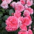 Представленный в 1977 году, в Германии, селекционной фирмой Кордеса сорт плетистой розы «Розариум Ютерзен» сможет приятно удивить и порадовать своей универсальностью. Куст можно вырастить как плетистым (высотой до 3 метров), а так же как раскидистый шраб (до 2 метров). Многие розоводы называют этот сорт очень «живучим», благодарным и достойным. Сорт довольно крепок, вынослив и устойчив к болезням. Округлые, заостренные бутоны, распускаясь в крупные (10 – 12 см), густомахровые цветы буквально накрывают лавиной куст с блестящей листвой темно-зеленого цвета. Сами цветки красивого густого, лососево-розового цвета внутри и светло-карминово-розовые с легким серебристым напылением снаружи, собранные в большие гроздья, восхищают своей формой, которая долго держится благодаря «черепитчатой» укладке лепестков. Взрослея, цветок слегка выгорает, но это лишь подчеркивает красоту и яркость молодых цветков и кистей. Слабый аромат «Розариум Ютерзена» компенсируется здоровьем и обильным цветением. Куст этой розы прекрасен, даже в одиночной посадке – он формирует роскошный, пылающий «купол» из очень ярких, крупных, густомахровых цветков. Следует отметить, что в некоторых северных регионах «Розариум Ютерзен довольно медленно, но уверенно нарастает.