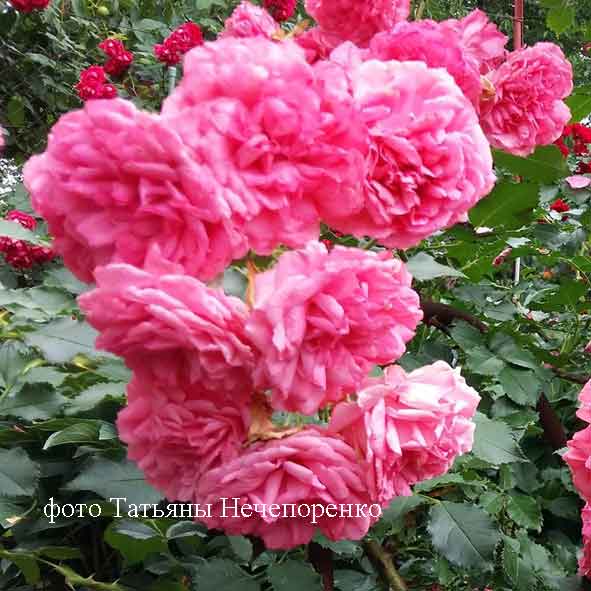 Заглянув в карточку сорта думала, что здесь будет не протолкнуться от комментариев, ан нет, незаслуженно обошли вниманием чудесную розу! Она очень нравится всем моим домашним. И соседи не оставляют ее своим восхищением! Куст большой и раскидистый, растет скорее в ширину, чем в высоту (места ей надо много), обязательно нужны подпорки под побеги, т.к. неимоверное количество бутонов раскрывается в яркие цветы, которые кажутся растрепанными и очень милыми, держатся долго. Листья красивые резные глянцевые, темно-зеленые, молодые побеги с красноватым оттенком. Нарастает хорошо, если плохо перезимовала, то восстановление происходит быстро. У меня их две и посажены симметрично. Очень люблю и хвалю!