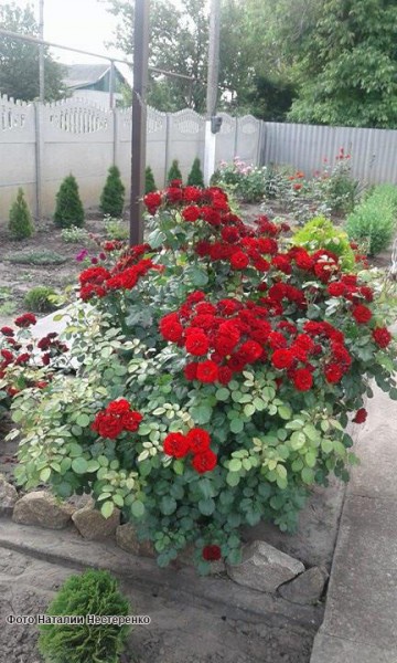 Очень красивая легкая роза! Низкая красотка удивит вас своим трудом, изысканностью и стойкостью к болезням! Она вас никогда не обидит отсутствием бутонов и цветков! Первая волна цветения вас удивит отдельно стоящими цветками, а последующее цветение ошеломит гроздью, гроздью с десятком бутонов, которой не страшны ни дождь, ни болезни, ни время! Ее легкий аромат дает понять, что не всем подвластна стихия ароматов, но ее букет это компенсирует) Ее цвет настолько яркий, что листва кажется просто коженной с приятным темно зеленым оттенком. Потрясающая красотка! Подружитесь с ней и она вас отблагодарит от души)
