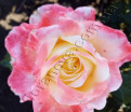 Центр её цветка – это знакомый многим с детства цвет молока с медом. Этот цвет, словно подсвечивает цветок изнутри, переходя ближе к краю в нежно-кремовые, а далее преображаясь в розовые тона. Эта роза умело играет расцветкой на протяжении цветения, меняя свою форму, демонстрируя слегка «рваную» форму лепестка и поражает размером цветка (до 11 см) в соотношении к размеру куста (около 50 см).