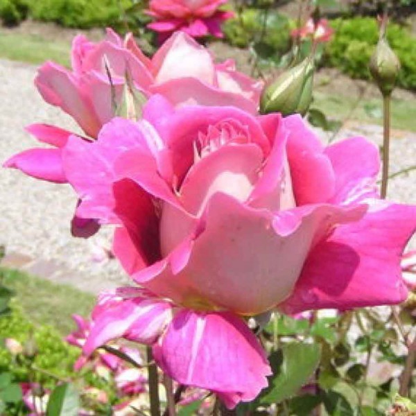 Almirante Americo Tomas, Miramar Алміранте Америко Тома, Мірамар, (Sultane × Peace; Alfredo & Fos. Lda. Moreira da Silva, 1955). Квітки геранева-червоні. Реверсивна сторона пелюстки темно-жовті. Квітки гарної форми, з гострим центром. Розмір квіток Алміранте Америко Тома досягають діаметра 10-11 см при махровості у 40-45 пелюсток. Кущі сильно рослі, прямі. Листя шкірясті, блискучі. Цвітіння триває протягом усього сезону. Морозостійкість вище середньої.