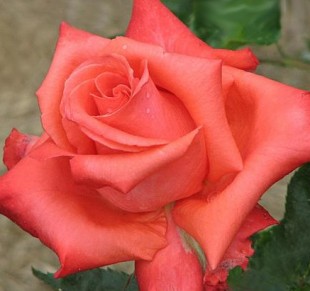 Ave Maria, Аве Марія (W.Kordes` Sohne, 1972). Бутони овальної форми, оранжево-червоного кольору. Квітки яскраві, лососева-рожеві, на сонці набувають оранжево-червоний колір. Діаметр квітки близько 10 см, форма гарна, з високим центром, махрові (25 - 27 пелюсток). Найчастіше на квітконосах розташовані по одному, рідше зібрані в невеликі суцвіття. Аромат цих троянд ярковираженний. Листя темно-зелена, шкіряста, блискуча. Кущі середньорослі, досягають висоти до 80 см, рівні, з потужними пагонами. Цвітіння дуже рясне і тривале. Зимостійкість висока. Стійкий до грибних хвороб. Застосовується в групових посадках. Дуже добре виглядає при вирощуванні на штамбі.